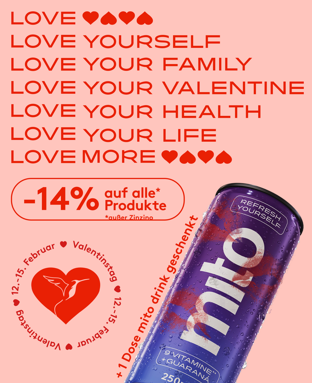 Versorg dich jetzt mit unserem mito drink 2.0 und sichere dir -30% Rabatt: noch fruchtiger im Geschmack, mit dezenter Ingwernote, mehr Magnesium & Guaraná aus kontrolliert ökologischem Anbau. Dein smartes Erfrischungsgetränk für den Energie-Boost in Alltag und Sport – für eine gezielte Mikronährstoffversorgung bis auf Zellebene.