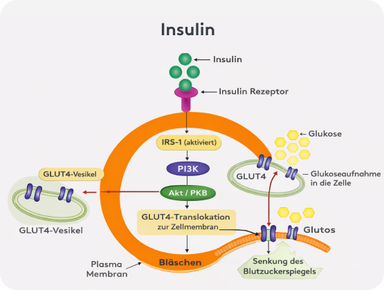 Dieser Signalweg gewährleistet, dass nach einer Mahlzeit überschüssiger Zucker sauber von der Blutbahn in die Zellen geleitet wird.
