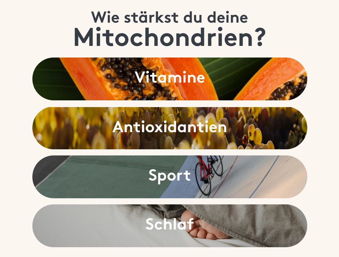 - 40 bioaktive Premium Wirkstoffe – alles, was deine Mitochondrien als Futter brauchen