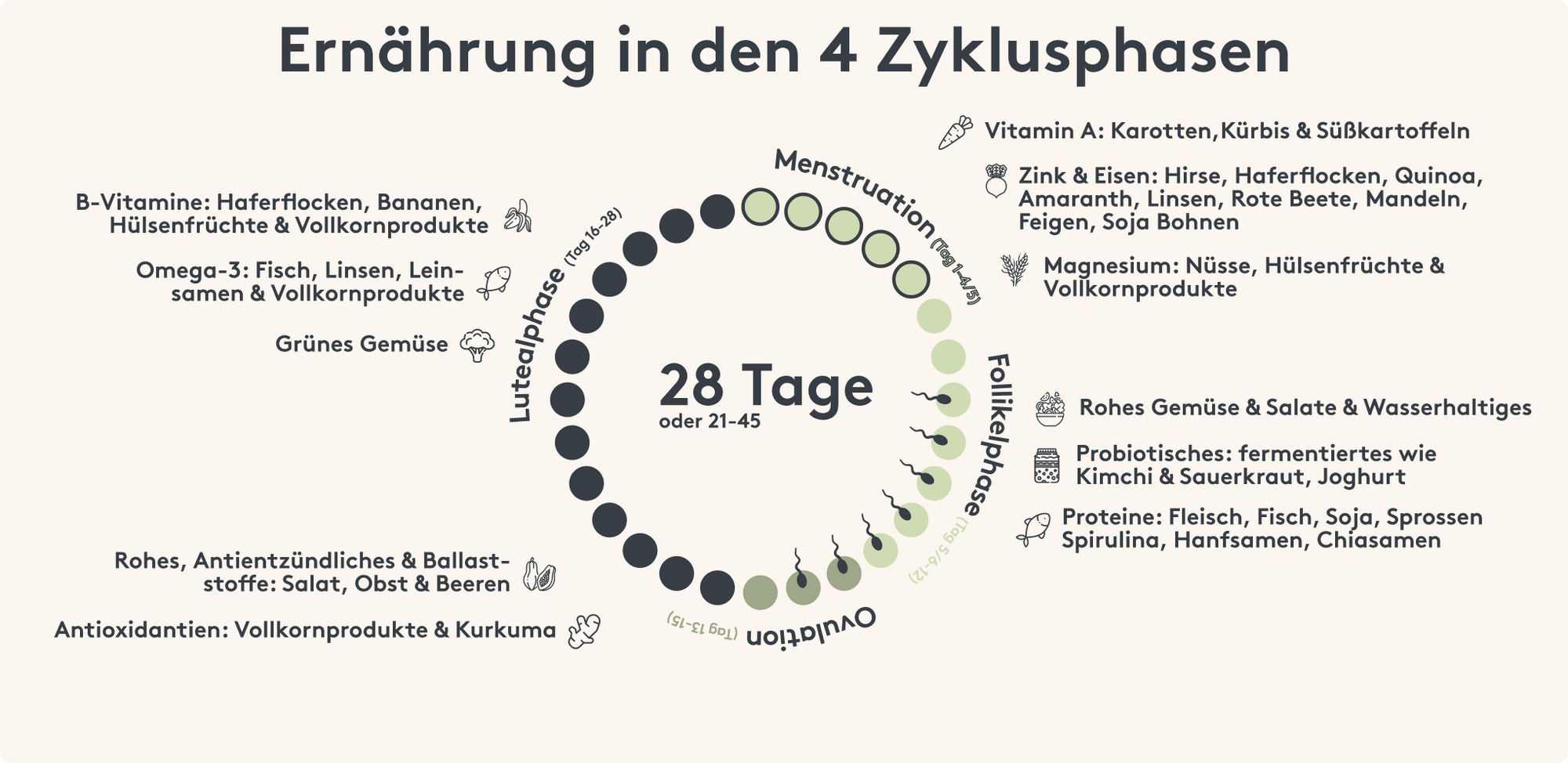 Wichtig: Jeder Mensch hat einen anderen Nährstoffbedarf. Möchtest du Zyklusbeschwerden lindern oder deine Ernährung umstellen, solltest du zunächst mit deinem Arzt oder einem Ernährungsexperten sprechen.