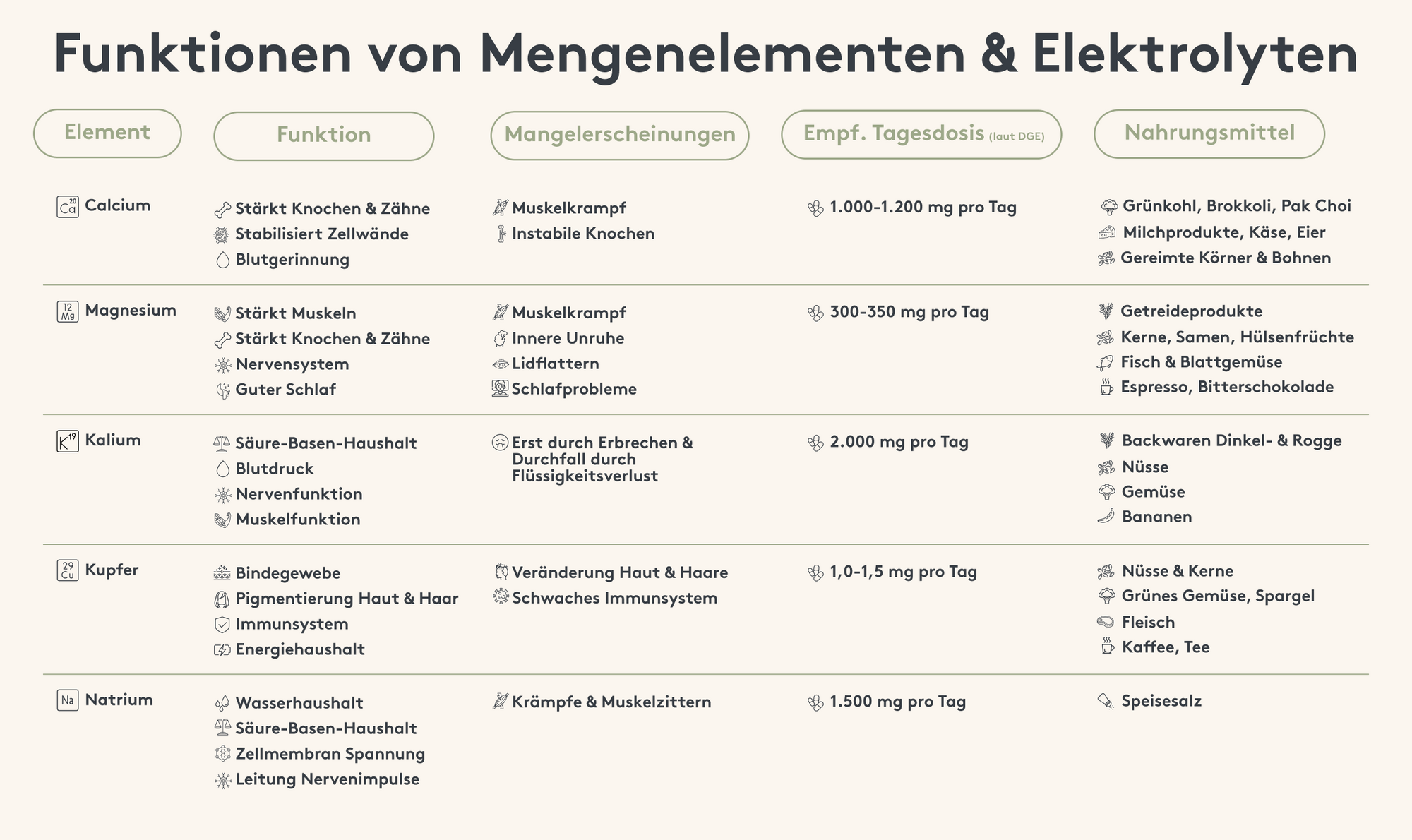 - Mineralstoffe, Spurenelemente und Elektrolyte: Unterschiede und Funktionen