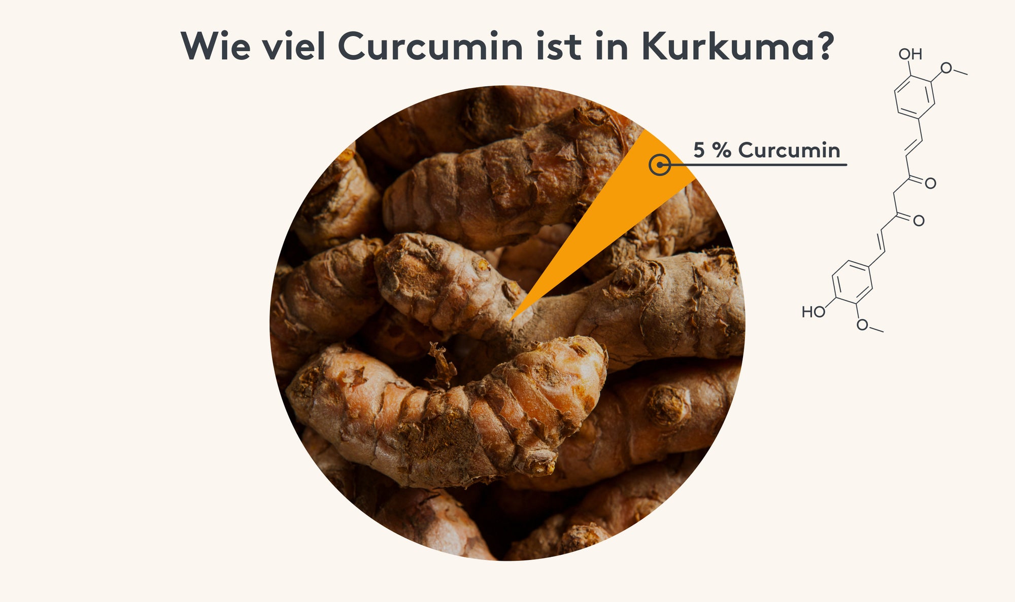 Kurkuma, das gelb-orangene Gewürz, kennst du mit Sicherheit. Mit der Wurzel gibt es etliche Rezepte für Kurkuma Latte oder auch goldene Milch genannt, Kurkuma Shots oder Kurkuma Tee. Und auch schon davor war Kurkuma ein wichtiger Bestandteil der traditionellen asiatischen und besonders der indischen Küche. Der Grund dafür: Kurkuma enthält den sekundären Pflanzenstoff Curcumin, der ihm nicht nur die Farbe, sondern auch die vielen möglicherweise gesundheitsfördernden Wirkungen verleiht. Kurkuma und Curcumin werden damit im Alltag oftmals gleichgesetzt. Dabei besteht die Wurzel nur zu etwa 5 % aus Curcumin. Dazu kommt, dass das Polyphenol auch noch schlecht aufgenommen wird, besonders in seiner rohen, natürlichen Form. Bringt es also überhaupt etwas, Kurkuma so zu konsumieren? Und was bringt der angepriesene Pflanzenstoff Curcumin eigentlich?