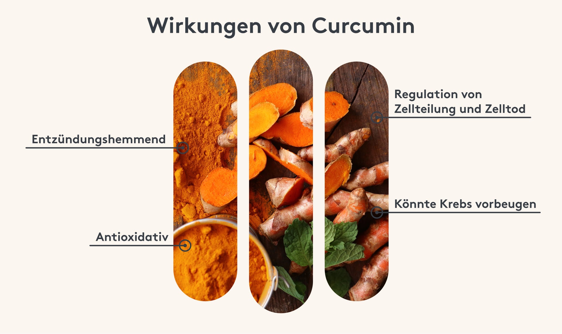Es geht sogar noch weiter! Der Pflanzenstoff Curcumin hat potentielle Anti-Krebs-Effekte – zumindest in der Grundlagen- und präklinischen Forschung ist dies weitestgehend bestätigt. Zu Curcumin wurde in den letzten Jahren intensiv in Zusammenhang mit Krebs geforscht. Es zeigt sich, dass Curcumin beispielsweise den Zelltod einleiten kann, der bei entarteten Zellen meist gestört ist6. Im Zusammenhang mit einigen Chemotherapeutika wird Curcumin bereits für Forschungszwecke angewendet. Wer weiß, vielleicht wissen wir bald noch mehr und können schon bald Curcumin als zusätzliche Behandlung heranziehen.