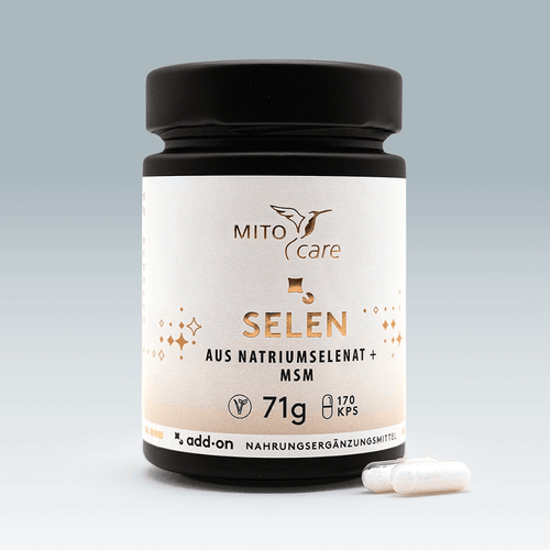 Selenium is important for protecting cells from oxidative stress, as it is found in the enzyme glutathione peroxidase¹. Glutathione is the body's most powerful antioxidant. The reaction in which glutathione reduces oxidative stress is catalyzed by glutathione peroxidase. Selenium is also a component of several other enzymes and proteins. Through its integration in the glutathione peroxidase of sperm, selenium is also important in reproduction. Selenium is also relevant as a component of an enzyme for the function of the thyroid gland, as this enzyme is involved in the production of hormones. Selenium also supports hair and nails. Likewise the immune system.²