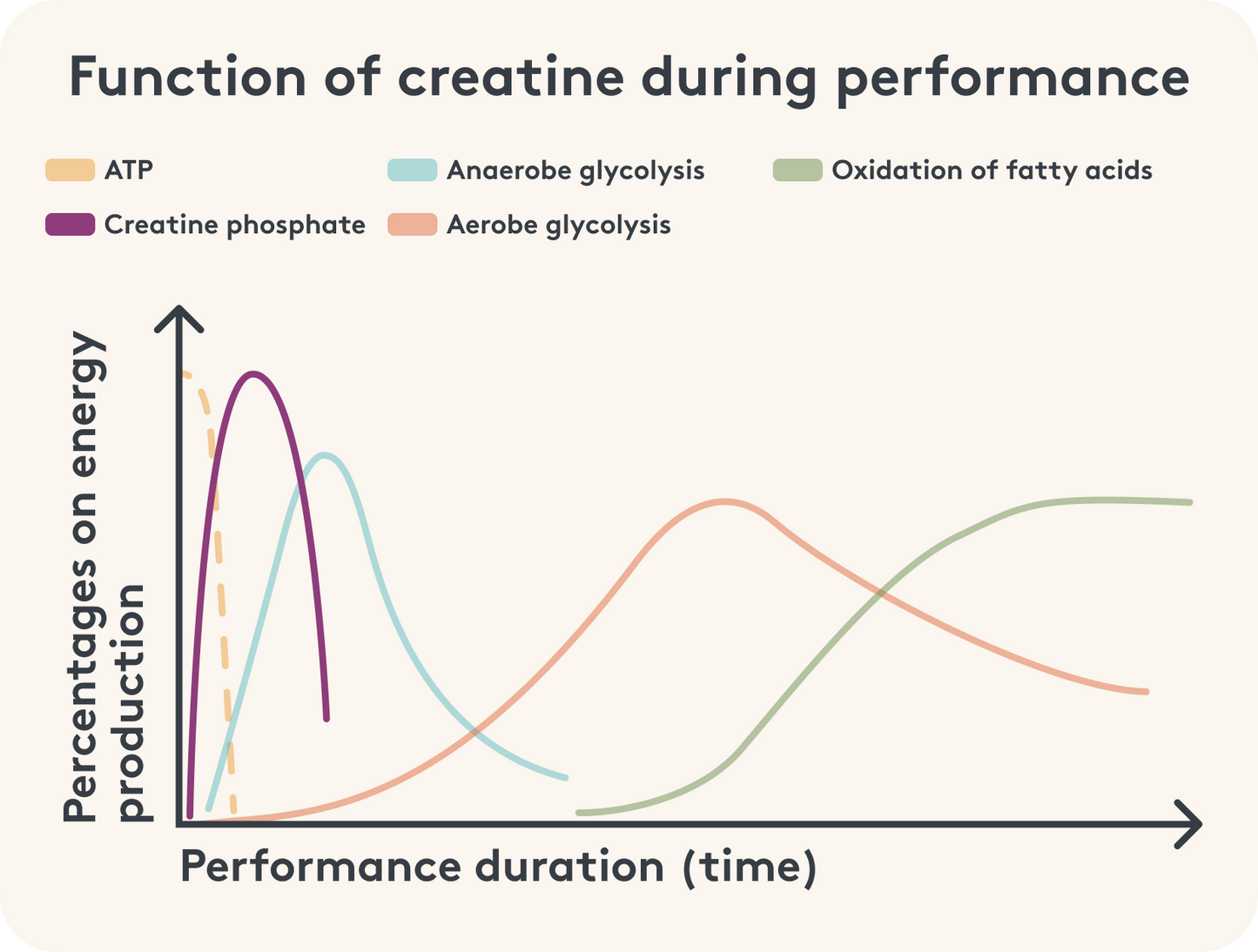 Creatine plays an important role here because it helps the muscles to provide energy quickly and in the short term before the body has to resort to glucose. After a few minutes, the muscle ideally switches again - then oxygen is used to generate energy.