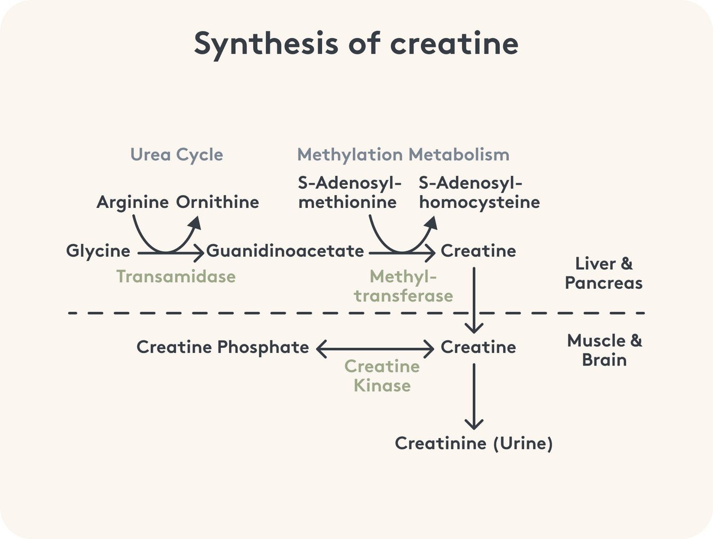 How much creatine you can actually produce yourself depends on whether all the required substances are available in sufficient quantities. The body needs methionine in particular, which is converted to SAMe (S-adenosylmethionine), for many other purposes. If there is too little of it, the organism first saves on creatine synthesis.