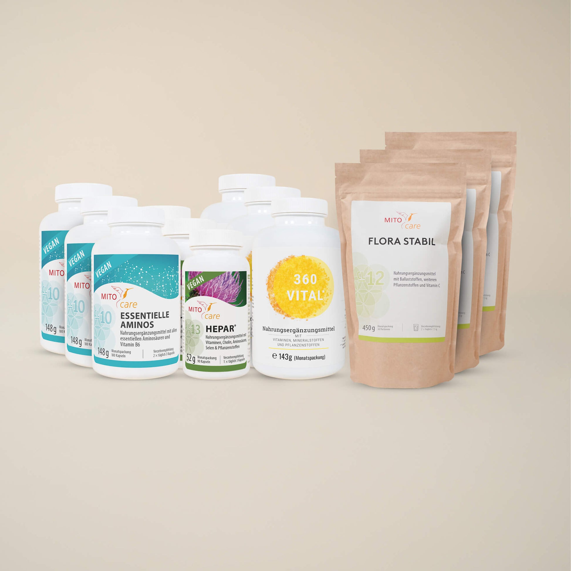 Package of 3x Essential Aminos, 3x Hepar, 3x 360 Vital and as well as 3x Flora Stabil