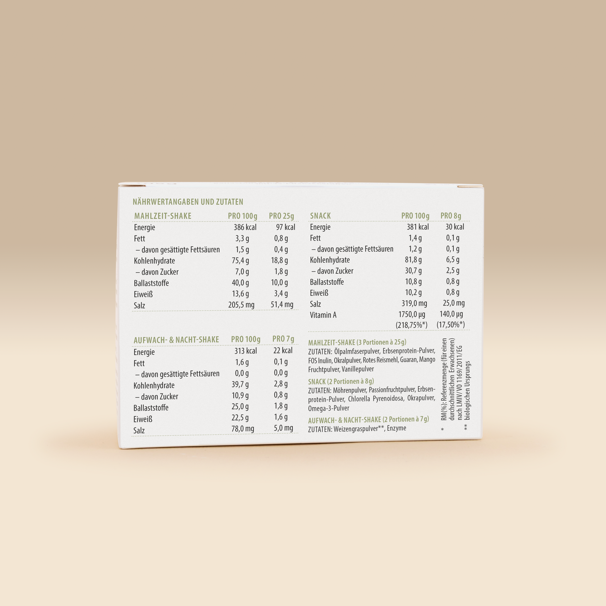 | Meal shake | per 100 g | per 25 g |