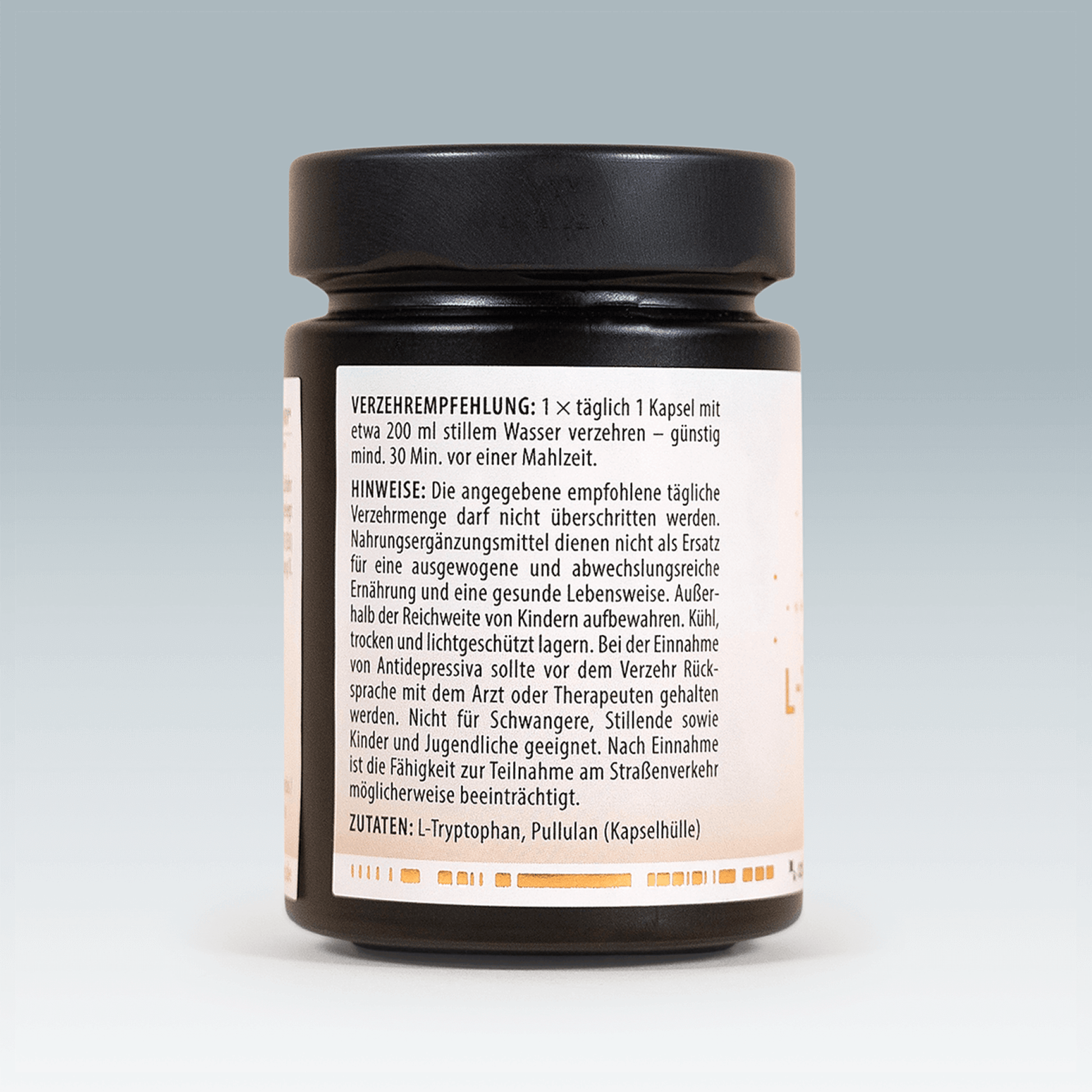 The stated recommended daily intake must not be exceeded. Food supplements are not intended as a substitute for a balanced and varied diet and a healthy lifestyle. Keep out of the reach of children. Store in a cool, dry place away from light. If taking antidepressants, consult your doctor or therapist before consumption. Not suitable for pregnant women, nursing mothers, children and adolescents. After taking the product, the ability to participate in road traffic may be impaired.