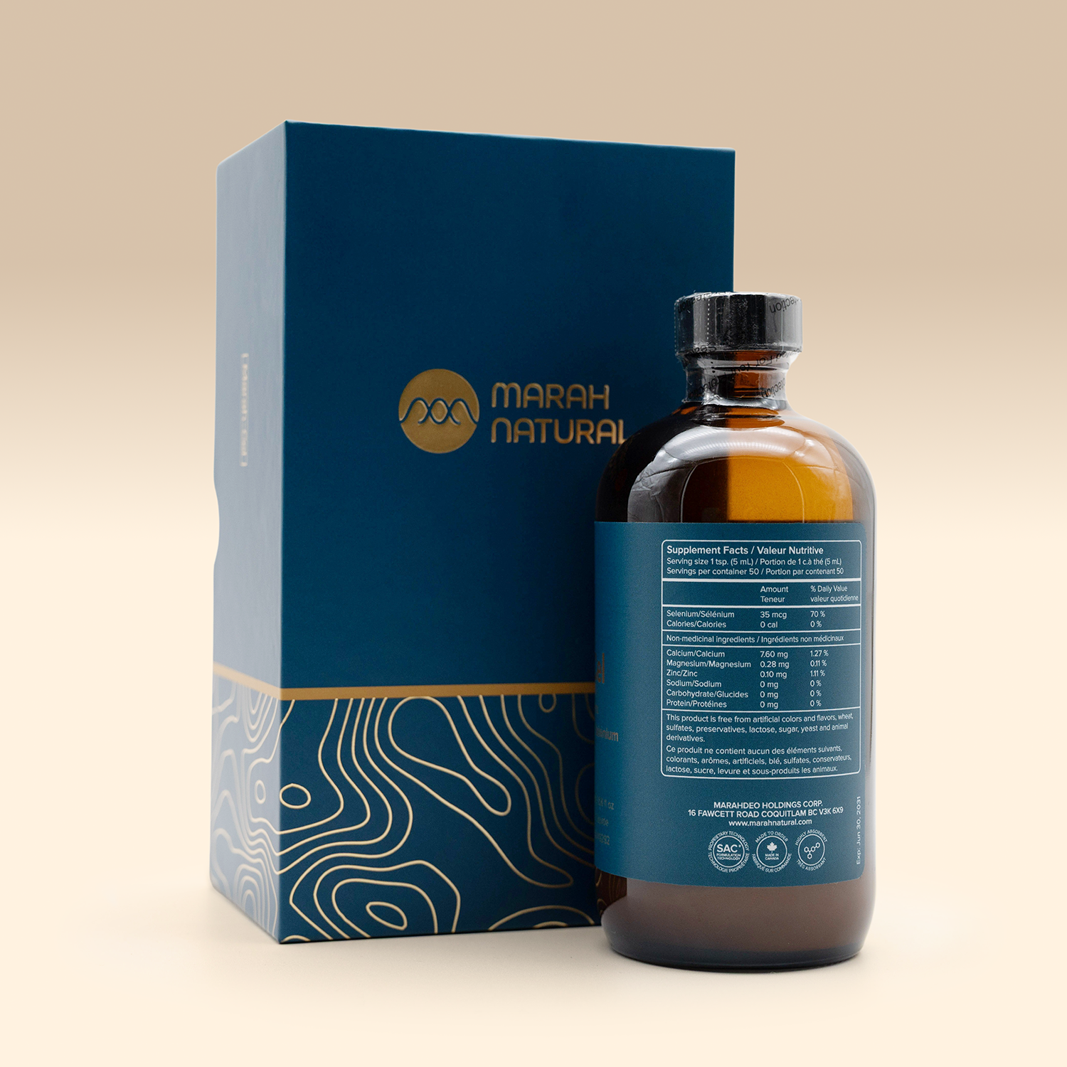 SAC technology (Sigma Anti-bonding Calcium Carbonate) provides calcium in a free, ionic state, which is the only physiologically active form of calcium in the human body. Normally, calcium from food enters the body in a protein-bound form and therefore cannot trigger the same physiological reactions as SAC products. SAC products are more effective than protein-bound calcium in cases of calcium deficiency and support bringing ionic-calcium-sensitive physiological reactions in the human body from the cellular to the systemic level. In liquid form, SAC is 200 times more soluble than conventional pill and capsule preparations, and also with a higher reaction rate. The Marah-Cel product contains the highest concentration of the proprietary SAC formulation technology of the Marah Natural line.