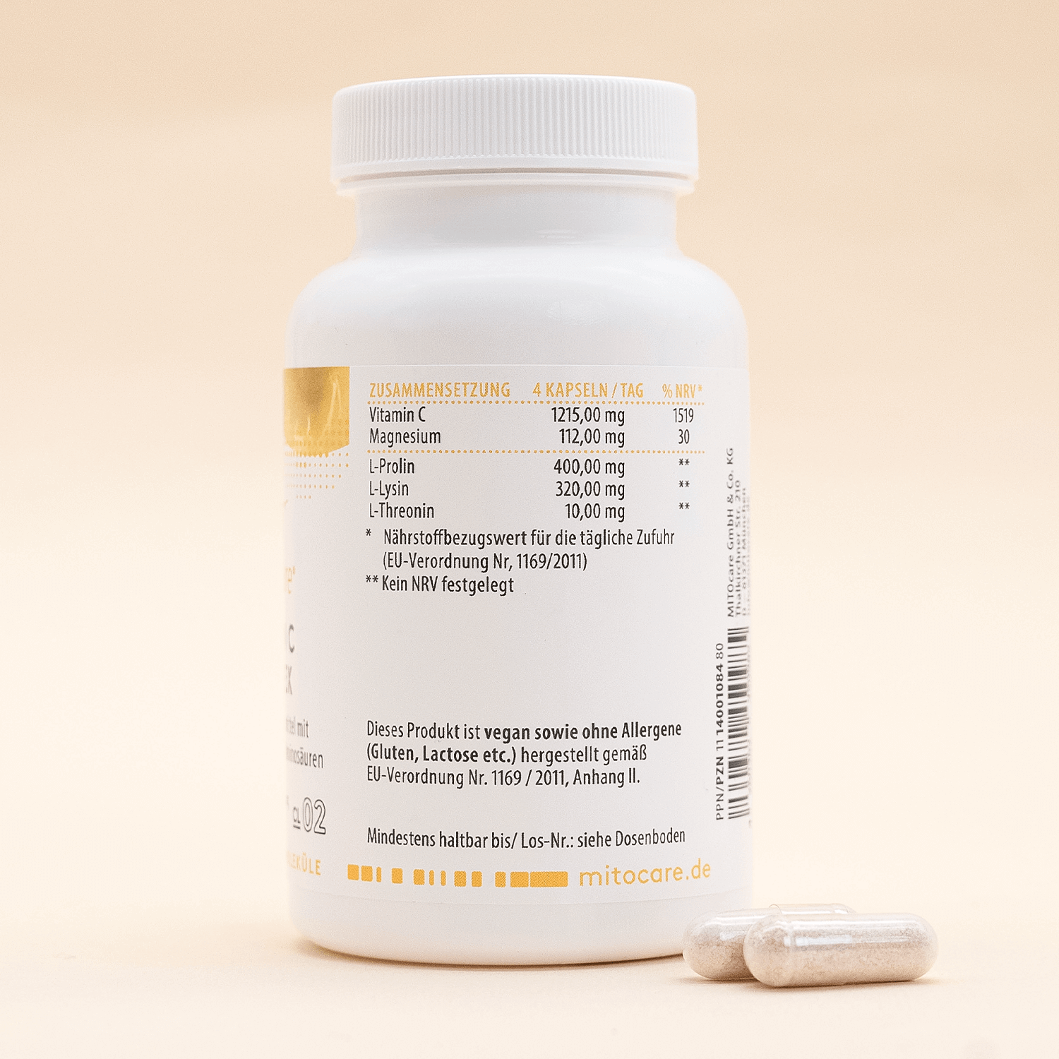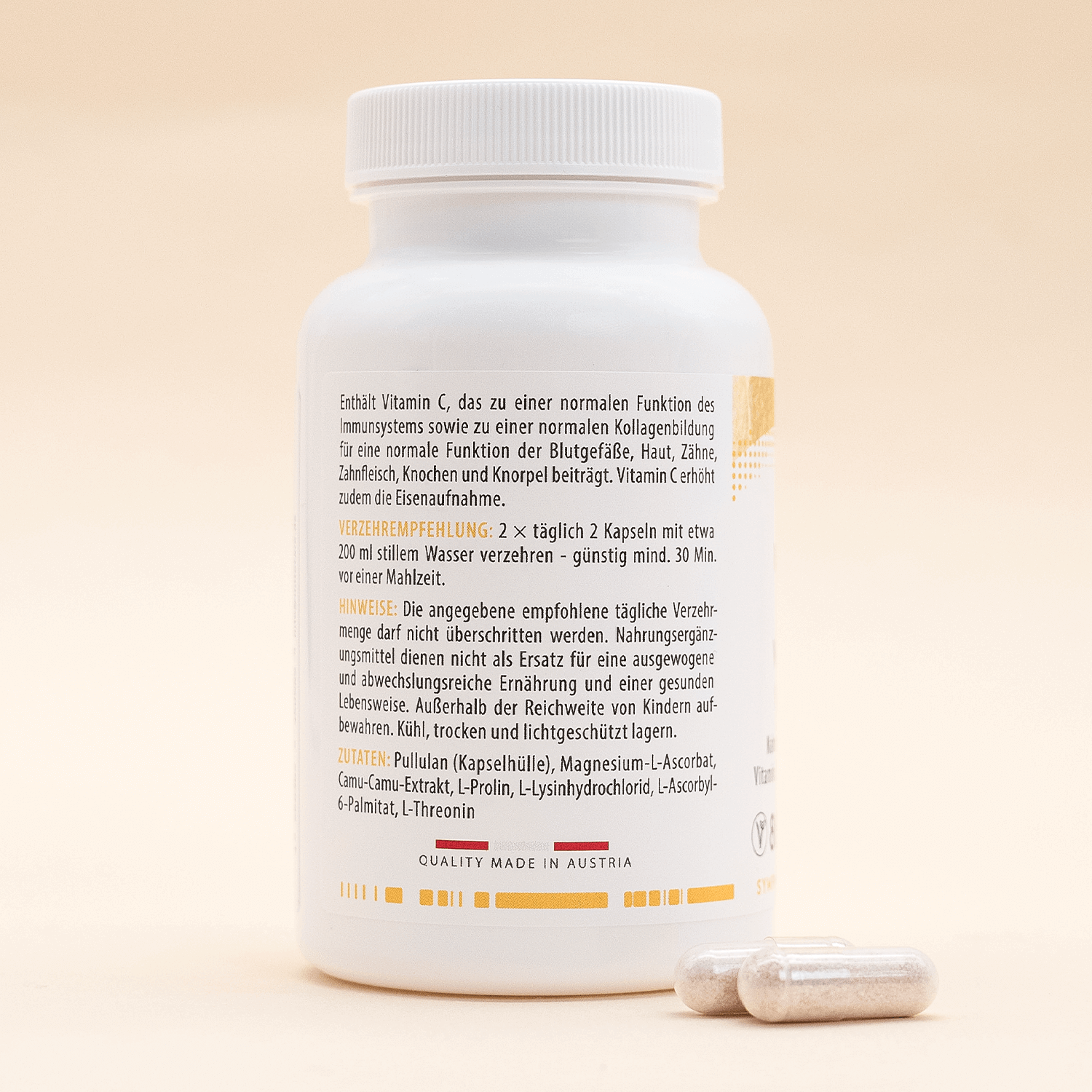 | Vitamin C (Magnesium L-Ascorbate, Camu Camu-extract, Ascorbyl palmitate) |