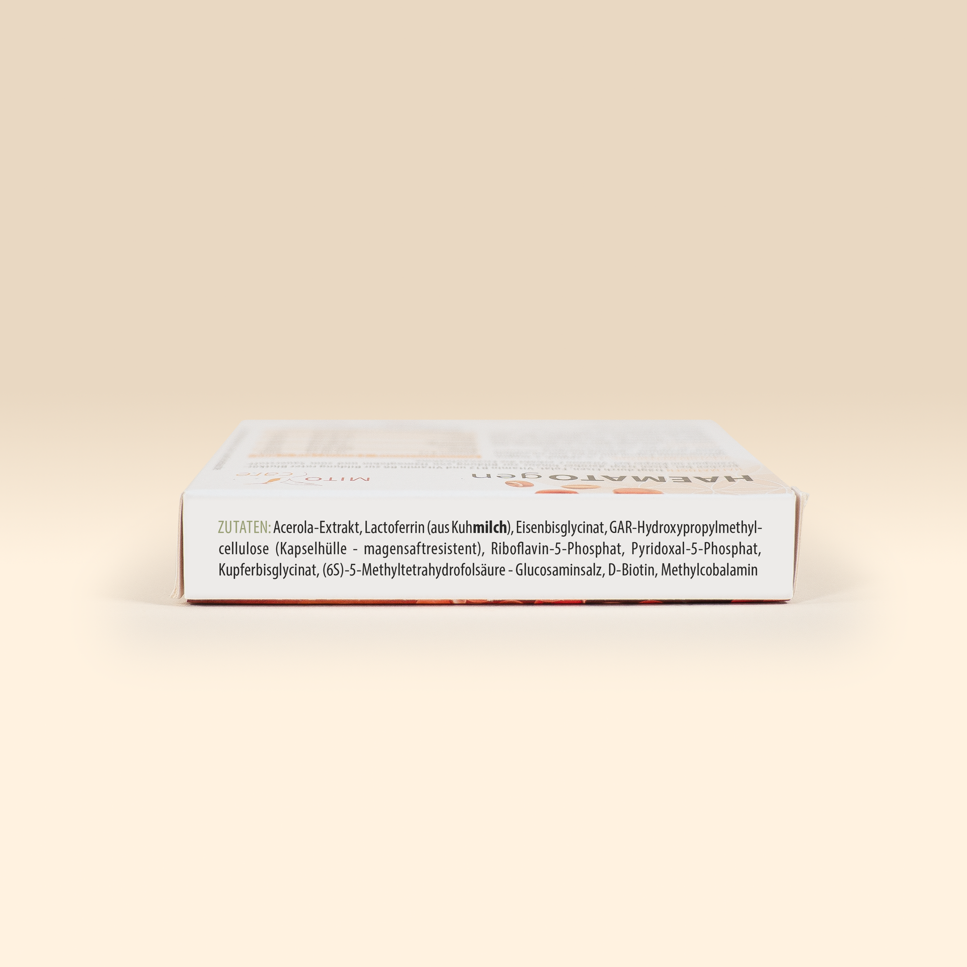 Wir verwenden für unser HAEMATOgen ausschließlich wertvolle Nährstoffe - geschützt in einer veganen Kapselhülle aus Pullulan mit verzögerter Freisetzung. Wir verzichten bewusst auf unnötige Füll- und Hilfsstoffe.