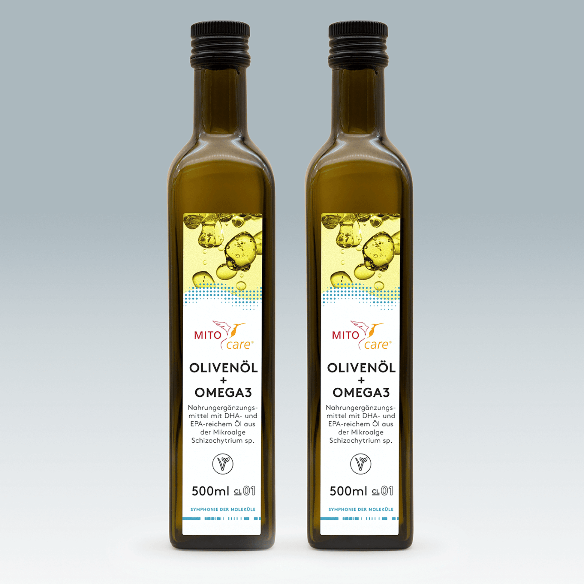 Unser 2-in-1-Öl in der Monatspackung: Hochwertige Mischung aus nativem Olivenöl und reinem Algenöl