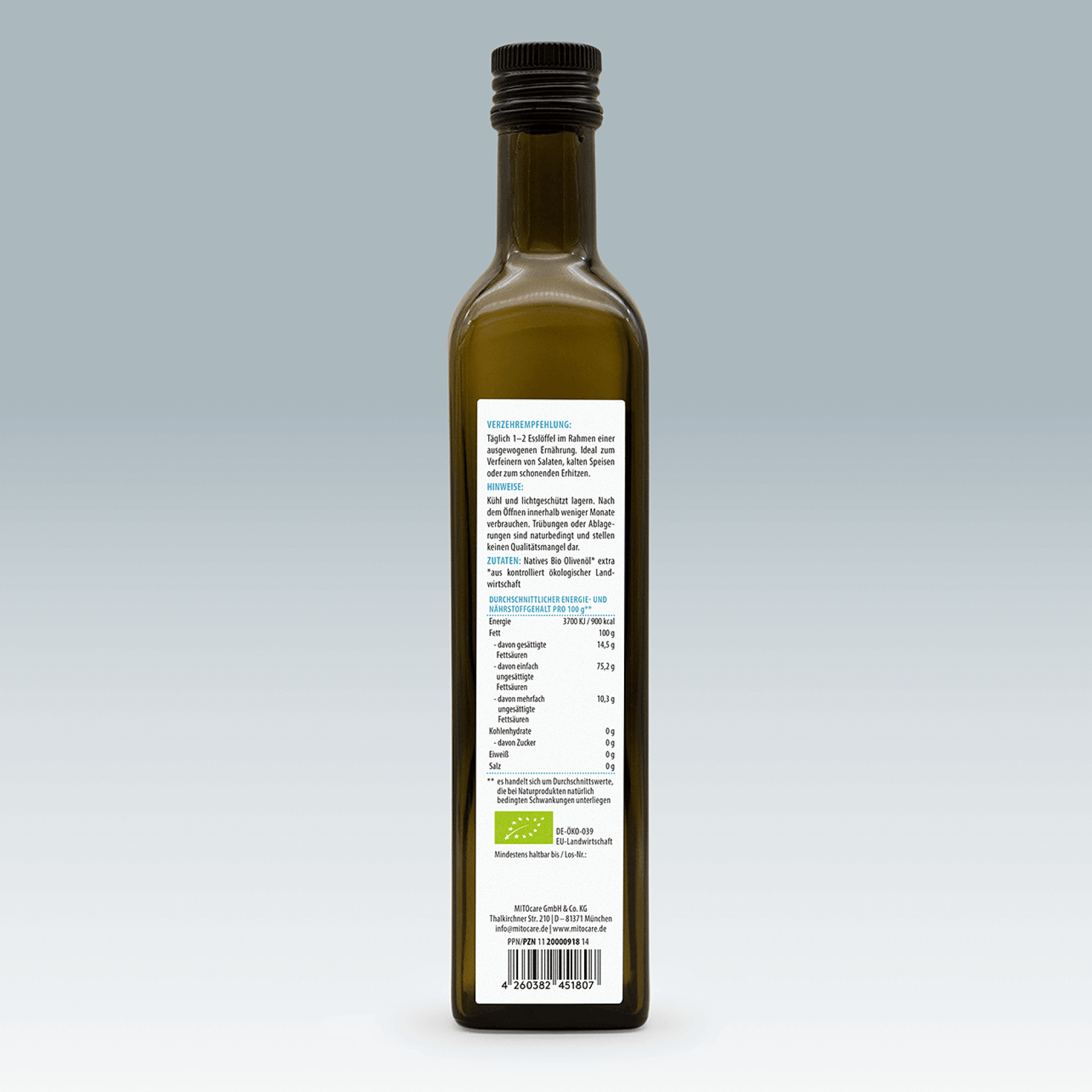 Unser natives Bio Olivenöl extra ist ein 100% reines, kaltgepresstes Olivenöl – frei von Zusätzen.