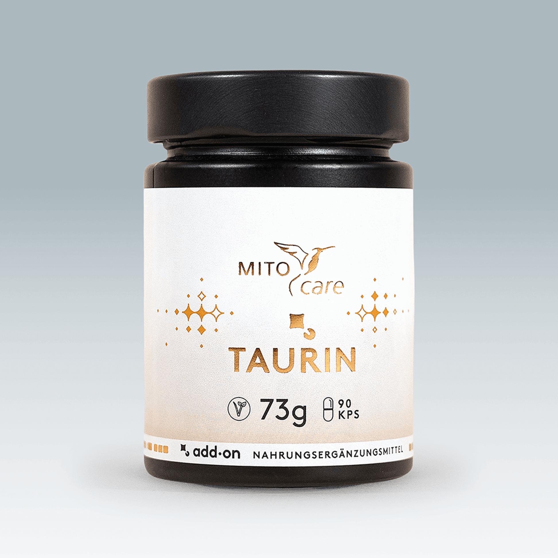 Unser MITOcare add·on Taurin enthält das Aminosäurenderivat Taurin, welches chemisch auch 2-Aminoethansulfonsäure bezeichnet wird. Im Köper kann unter bestimmten Voraussetzungen Taurin durch den Abbau der Aminosäuren Cystein und Methionin gebildet werden. Bei verringerter Zufuhr dieser beiden Aminosäuren ist entsprechend auch die Taurin-Bildung herabgesetzt. Vegetarier und Veganer könnten hier z.B. einen erhöhten Bedarf haben. Im Körper ist Taurin in verschiedenen Geweben und Organen vorzufinden, so z.B. im Gehirn, Herz und den Muskeln.